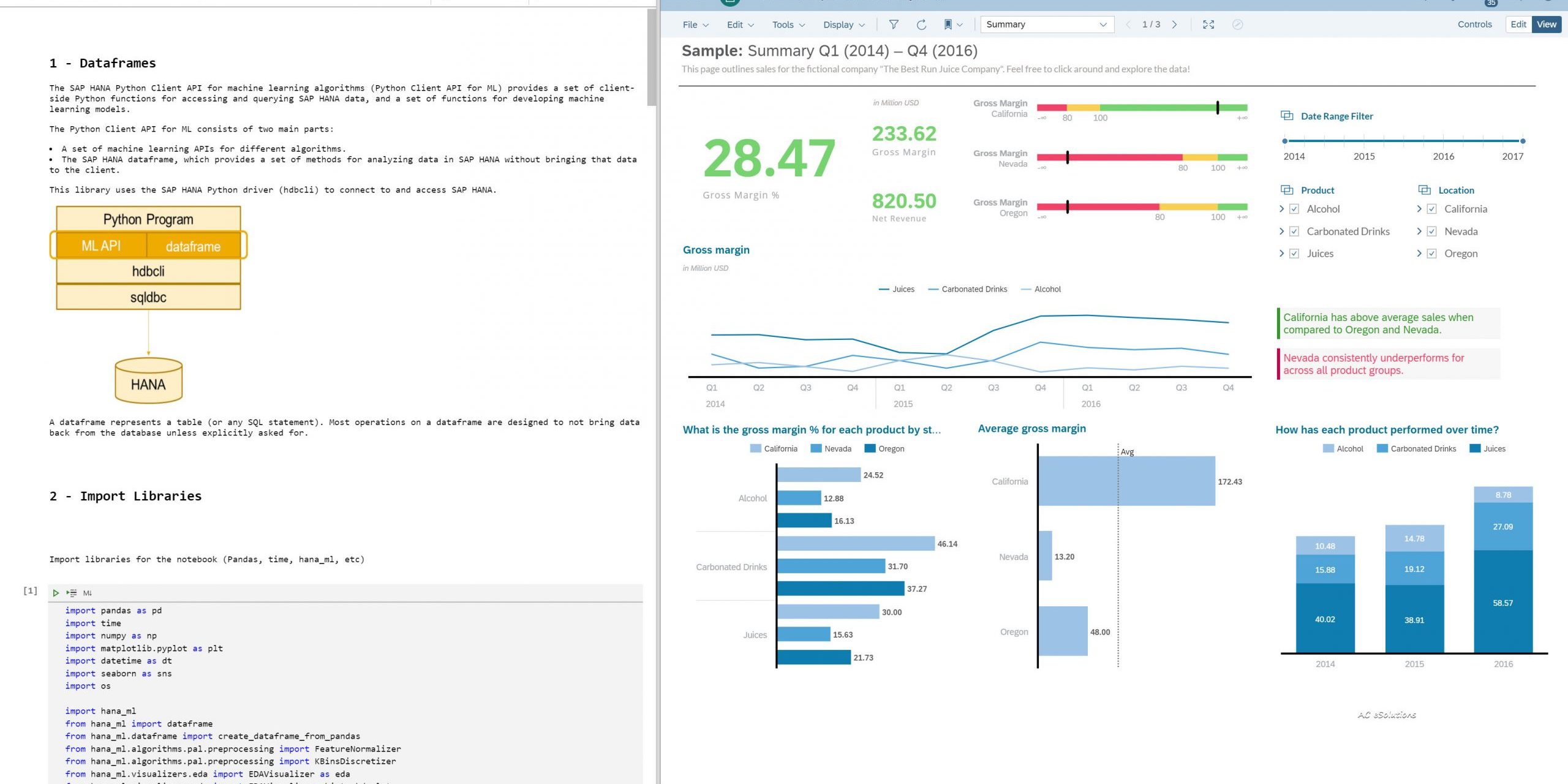 La API de Python de SAP HANA para las funciones de machine learning (API de cliente de Python para ML) proporciona un conjunto de funciones de Python del lado del cliente para acceder y consultar los datos de SAP HANA, y un conjunto de funciones para desarrollar modelos.