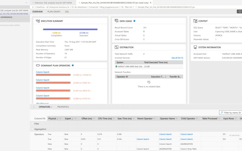 SAP Hana SQL Plan Analyzer en Visual Studio Code